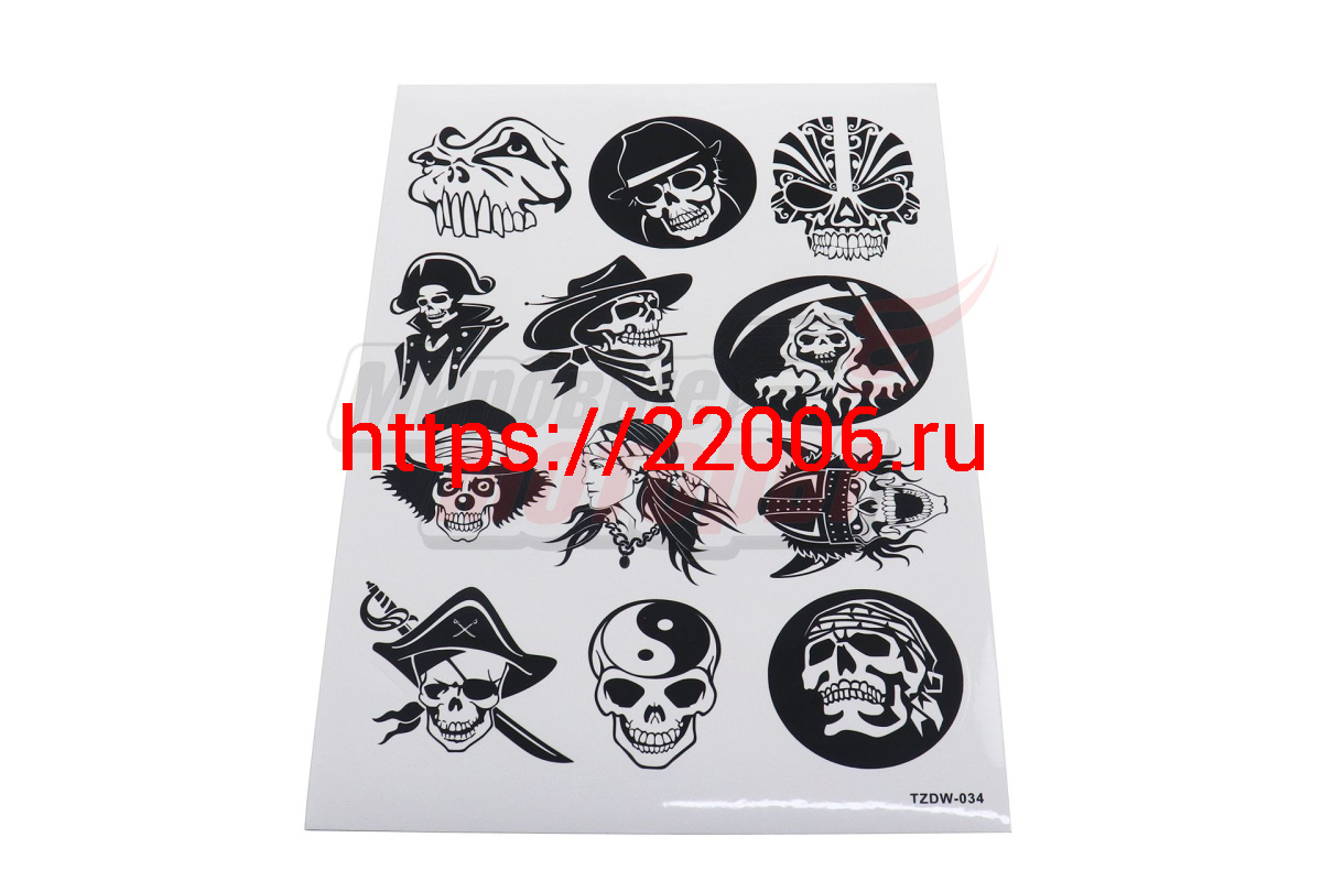 - Наклейки: черепа черно-белые MV22A4D034 (12 элементов)(21х30) в Камышлове недорого