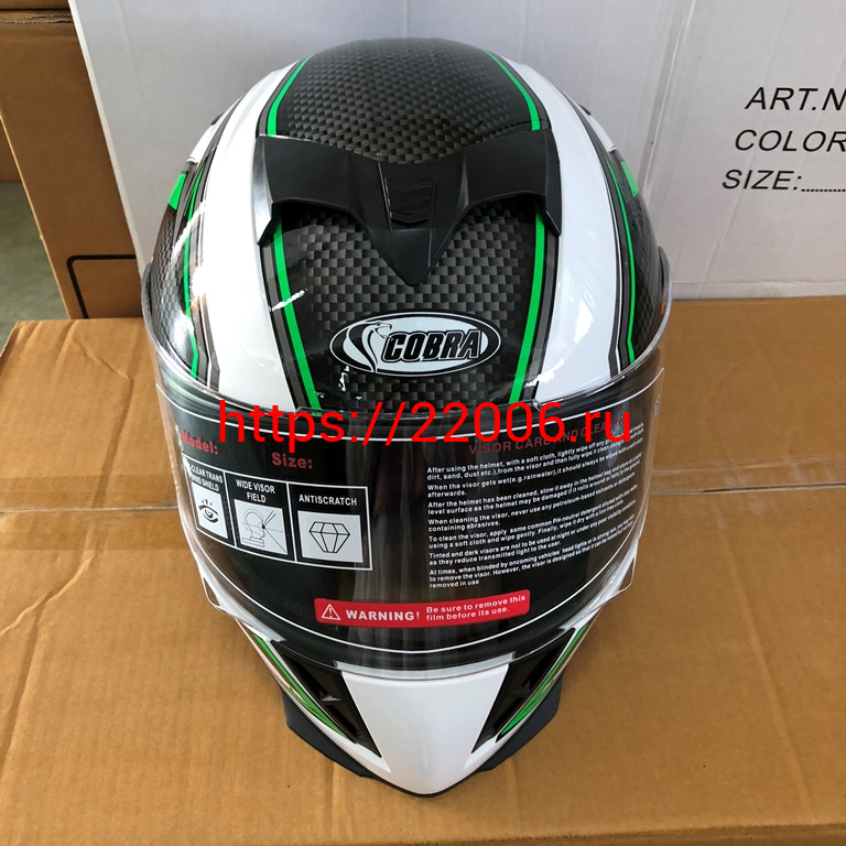 - Шлем интеграл COBRA JK311, белый с черным и зеленым(9), размеры L в Камышлове недорого