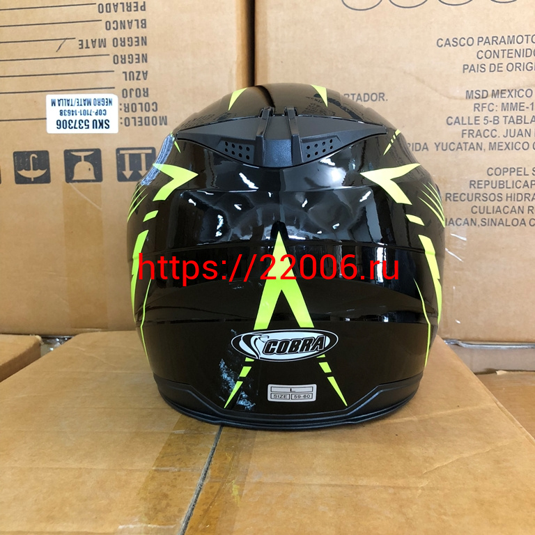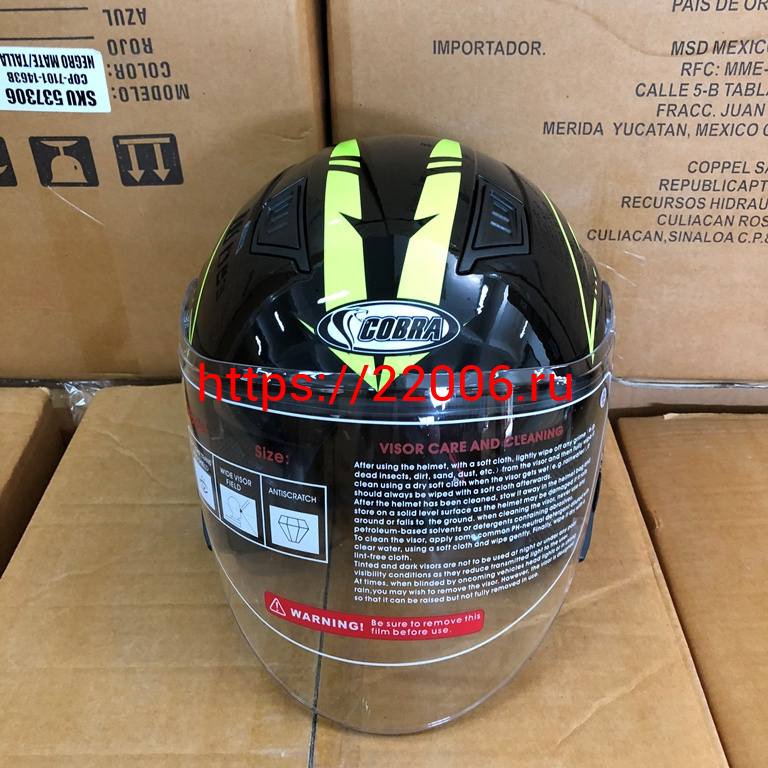 - Шлем открытый 3/4 COBRA JK516, черный с зеленым(11), размеры S в Камышлове недорого