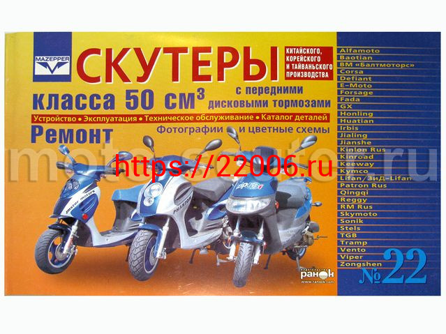 - Книга № 22 Скутеры китайского производства (двигатель 50 см3, дисковый) Устройство, Ремонт, Каталог в Камышлове недорого
