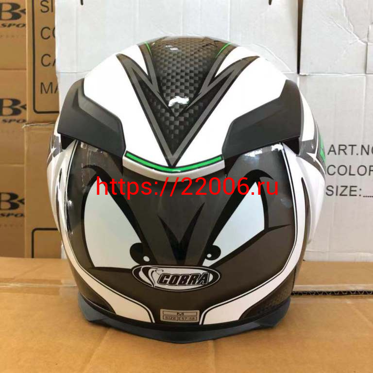 - Шлем интеграл COBRA JK311, белый с черным и зеленым(9), размеры L в Камышлове недорого
