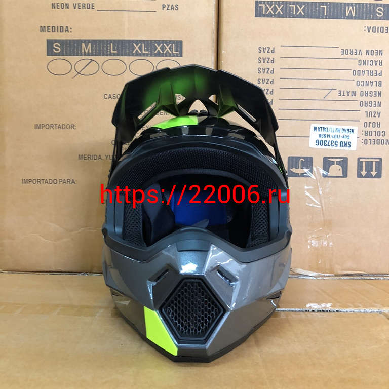 - Шлем кроссовый COBRA JK801, №3 серый - лайм, размеры L в Камышлове недорого